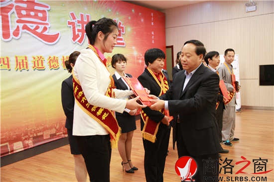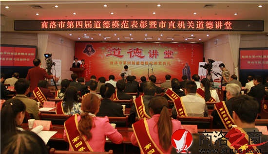 商洛之窗訊 (記者 李少虎) 4月29日上午,第四屆商洛市道德模范頒獎(jiǎng)典禮在市行政中心舉行。市委書記胡潤澤、市長陳俊等四套班子領(lǐng)導(dǎo)為道德模范頒獎(jiǎng)。