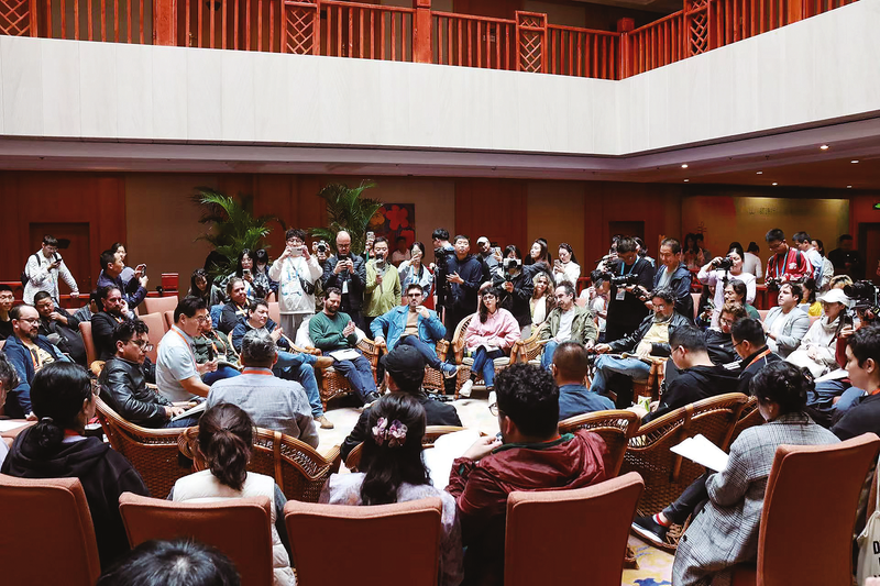 2025國(guó)際青春詩(shī)會(huì)期間,中拉詩(shī)人們圍坐在一起,朗誦分享自己的詩(shī)歌。