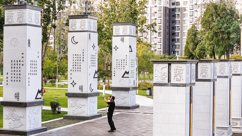 商洛市中心城區(qū)四皓街東北側(cè)的四皓公園里,四皓雕塑、墻、柱等景觀及其鐫刻在上面的一首首與四皓相關(guān)的古今詩詞,讓這處人文景觀顯得更加厚重。