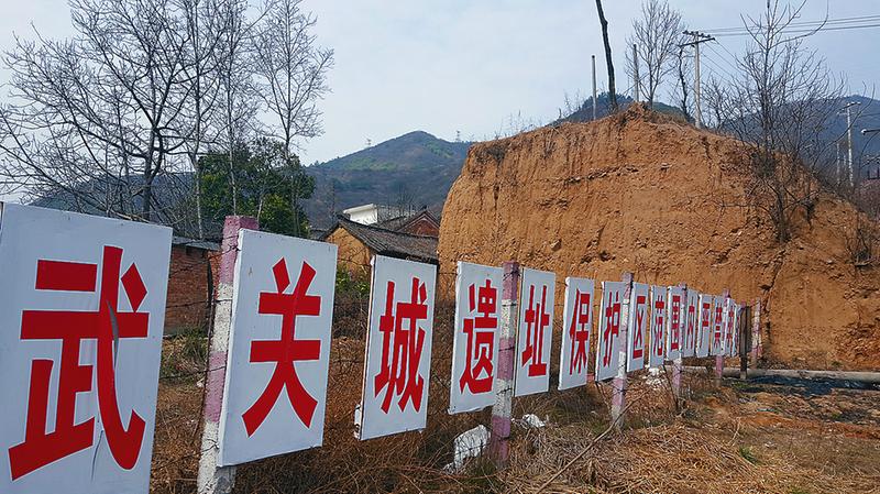 田老師告訴記者,歷史上的武關(guān)城重修于1510年,關(guān)城東西280米,南北320米。城墻高8米,厚3.4米,是用夯土版筑,灰磚包墻的。1860年,清商州知府曹熙主持了對武關(guān)的再次修復(fù),還手書“武關(guān)”二字。如今,站在武關(guān)城遠(yuǎn)眺東南,只見懸崖深壑,石環(huán)水繞,我們依然能領(lǐng)略到它的險(xiǎn)阻天成。然而無論曾是秦朝的要塞,抑或是漢時(shí)的關(guān)隘,武關(guān)已經(jīng)是芳草萋萋,荒蕪了許多春秋,也唯有這里的古城墻在向人們訴說著千年前的往事。