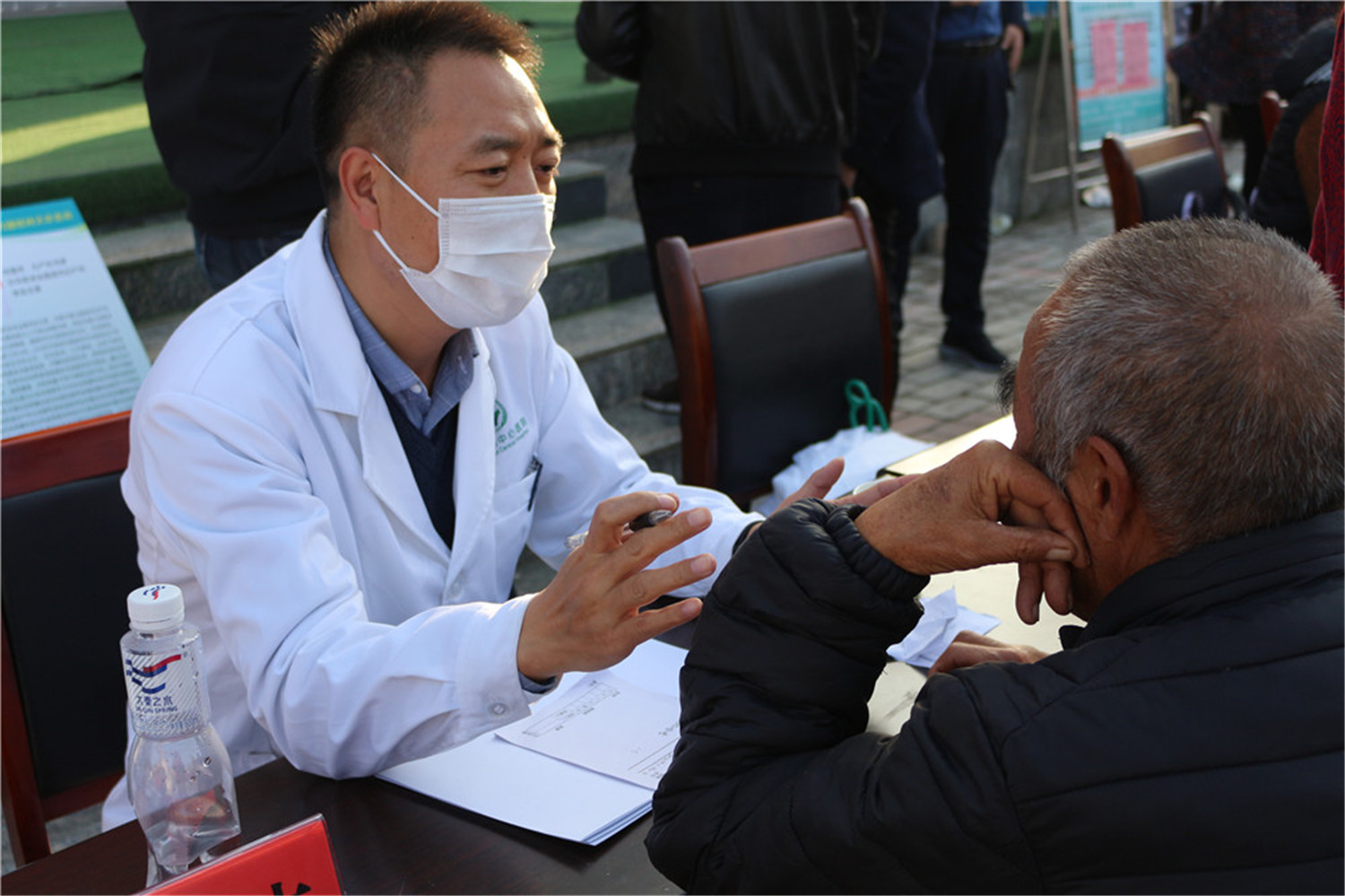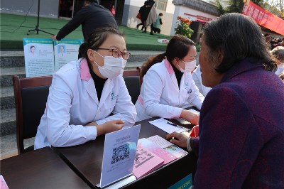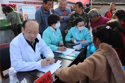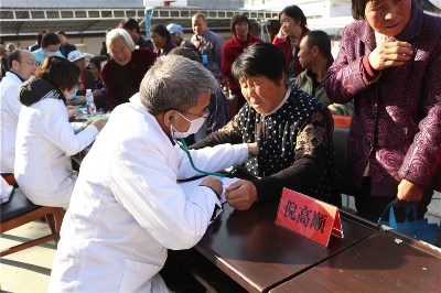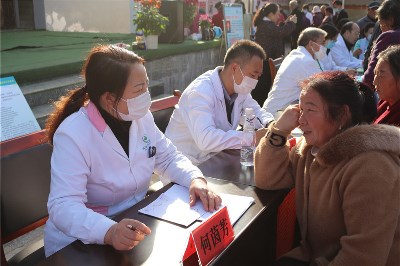 護理人員就目前農(nóng)村常見高血壓、糖尿病、腦出血進行宣講,發(fā)放宣傳手冊,耐心細致為每一位前來的患者測量脈搏、血壓,并對下一步治療方案給予合理化的建議。