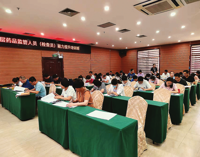 7月18日,市市場監(jiān)管局舉辦全市基層藥品監(jiān)管人員(檢查員)能力提升培訓(xùn)班,參訓(xùn)人員正在參加培訓(xùn)考試。