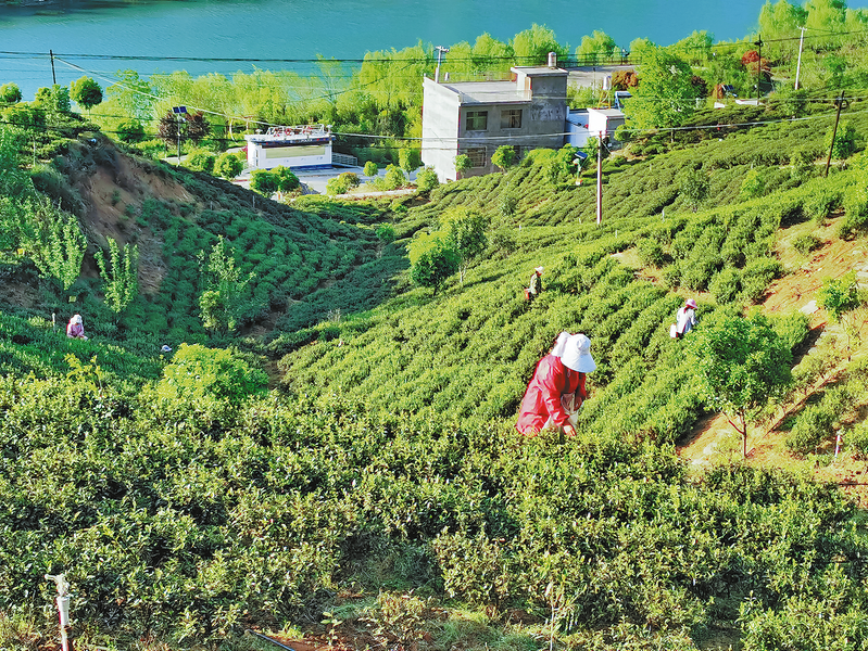 近期,丹鳳縣竹林關(guān)鎮(zhèn)千畝茶園基地內(nèi),處處抽芽吐綠,一片生機(jī)盎然。為保證茶園第一批春茶品質(zhì)和茶葉下樹率,農(nóng)技人員和茶農(nóng)正加足馬力,進(jìn)行茶葉采摘工作。 (本報(bào)通訊員 王 磊 攝)