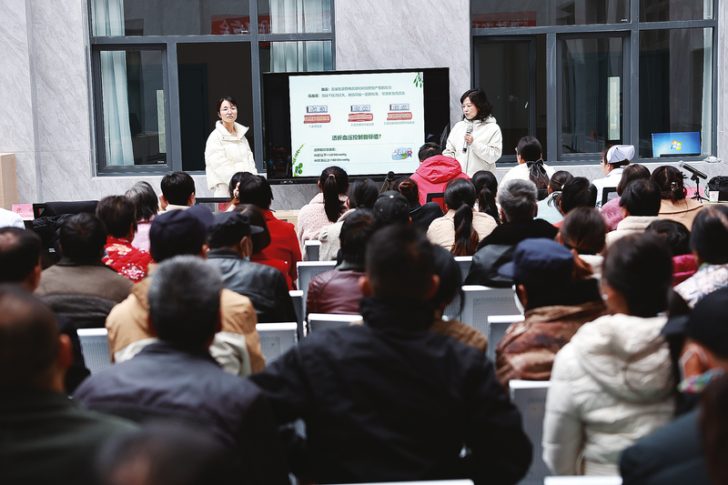 南京市第一醫(yī)院專家來丹鳳開展大型學術交流活動,陳夢星醫(yī)生(左)為患者進行知識科普。