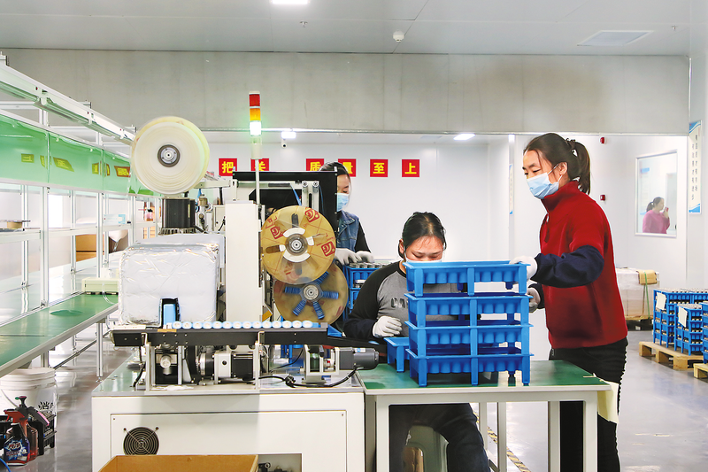 11月20日,在位于丹鳳縣的陜西朝陽動(dòng)力電池總裝基地項(xiàng)目生產(chǎn)車間,工人正在組裝儲(chǔ)能電池。該項(xiàng)目總投資3.3億元,項(xiàng)目全面運(yùn)營(yíng)后,預(yù)計(jì)年產(chǎn)值達(dá)3億元、利稅2200萬元,帶動(dòng)就業(yè)300余人。 (本報(bào)記者 楊 萌 攝)