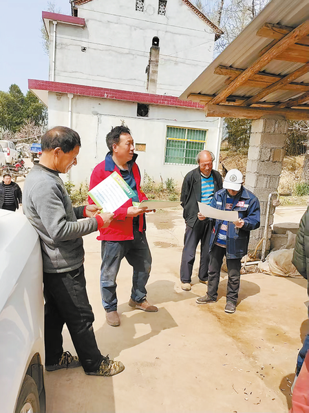 在巡山之余,向村民宣傳森林防火知識(shí)也是羅軍鋒(左二)的日常工作內(nèi)容。
