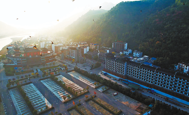 走進金絲峽,漫天的飛鳥于空中盤旋飛舞,古色古香的亭臺樓閣與紅綠交織的山巒相映成趣。流云浮現(xiàn),光影攢動,金絲峽像一位妝容精致的古典少女,吸引著來自各地的游客。