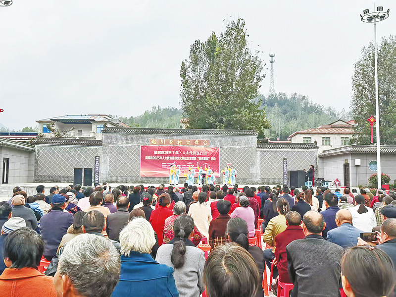 活動剛開場,縣劇團(tuán)的演員一亮相,就把現(xiàn)場氣氛拉滿。當(dāng)經(jīng)典豫劇《一家人歡天喜地把我請》的旋律響起,清亮的唱腔瞬間穿透人群,臺下觀眾的掌聲、叫好聲此起彼伏。“這戲我爺爺能倒著唱!你看他,手跟著拍子晃,嘴就沒停過。”后川村村民阮小倩舉著手機(jī)給爺爺錄像,鏡頭里的老人瞇著眼、跟著哼唱,臉上的笑容比陽光還燦爛。