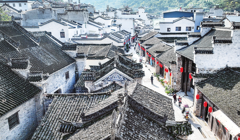 登高俯瞰,陜西省內(nèi)保留規(guī)模較大且較完整的明清古建筑群——明清街靜臥眼前,當(dāng)代作家唐慶華的《漫川關(guān)》仿佛在耳畔回響: