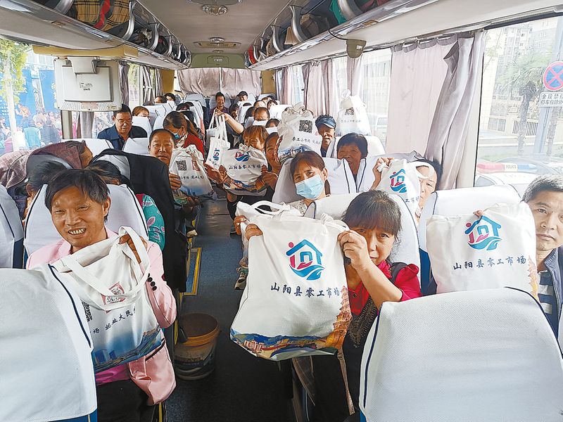 9月26日,山陽縣人社局送群眾去寧夏銀川、陜西洛川等地從事辣椒采摘、蘋果采收等工作。