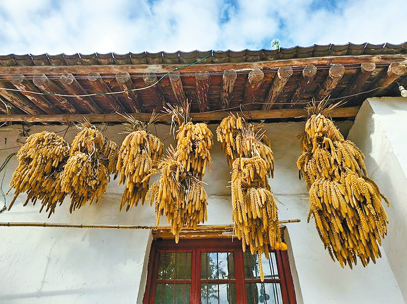 走近最高處的一戶人家,房檐坎下有一大片蘭花,菜園里西紅柿剛結(jié)出綠蛋蛋,一棵大樹(shù)遙指天空。這里民風(fēng)淳樸,遠(yuǎn)離塵世紛擾,真適合城里人前來(lái)觀光、休閑。