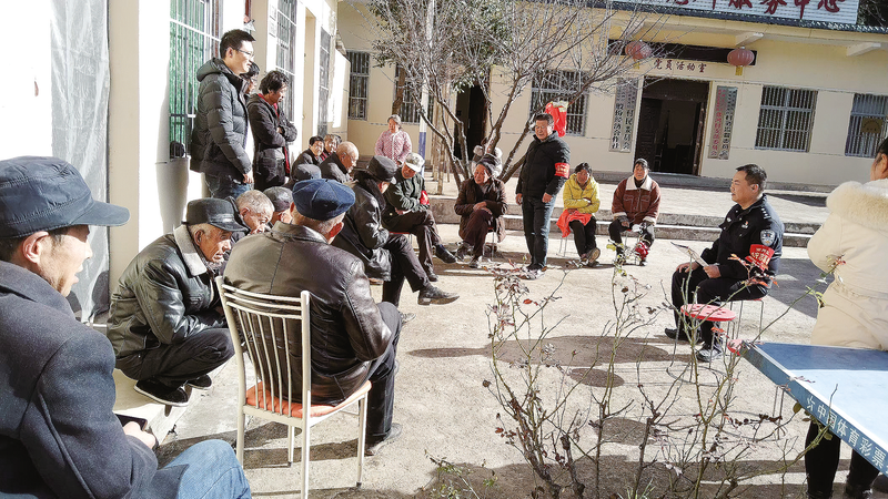 鎮(zhèn)級網(wǎng)格員在張河村向群眾解讀醫(yī)保繳納政策,得到群眾積極響應。