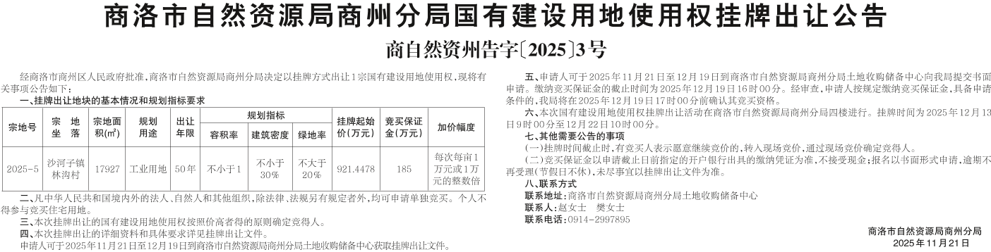 商洛市自然資源局商州分局國有建設(shè)用地…