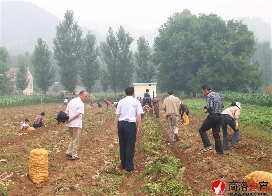 商洛之窗訊(郭夏季 樊菊榮 姚世年)一場(chǎng)連陰雨過(guò)后,天氣逐漸放晴,洛南縣今年種植的15萬(wàn)余畝馬鈴薯陸續(xù)開(kāi)始收獲。在秦嶺沿線(xiàn)的洛南縣馬鈴薯產(chǎn)業(yè)大鎮(zhèn)洛源、保安、麻坪、石門(mén)等鎮(zhèn)的田地里,到處一派喜氣洋洋、忙忙碌碌的豐收?qǐng)雒妗D為寺坡鎮(zhèn)水磨村薯農(nóng)在縣農(nóng)機(jī)中心農(nóng)機(jī)人員的精心指導(dǎo)下,積極開(kāi)展馬鈴薯機(jī)械化收獲。