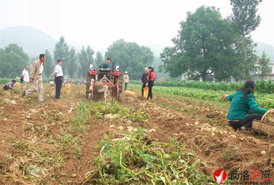 商洛之窗訊(郭夏季 樊菊榮 姚世年)一場連陰雨過后,天氣逐漸放晴,洛南縣今年種植的15萬余畝馬鈴薯陸續(xù)開始收獲。在秦嶺沿線的洛南縣馬鈴薯產(chǎn)業(yè)大鎮(zhèn)洛源、保安、麻坪、石門等鎮(zhèn)的田地里,到處一派喜氣洋洋、忙忙碌碌的豐收場面。圖為寺坡鎮(zhèn)水磨村薯農(nóng)在縣農(nóng)機中心農(nóng)機人員的精心指導(dǎo)下,積極開展馬鈴薯機械化收獲。