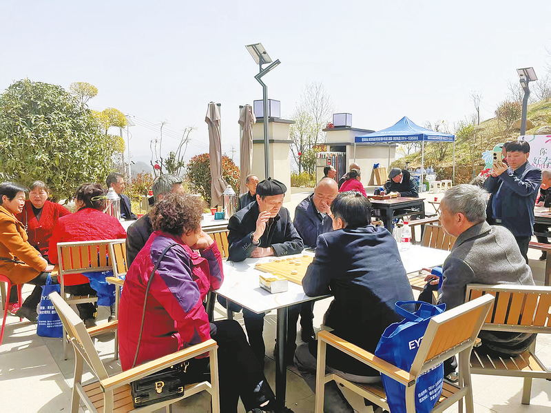 △在云起樂歡格小院,老人們正圍坐對(duì)弈,在棋盤的方寸世界里休閑互動(dòng),樂享愜意的養(yǎng)老時(shí)光。