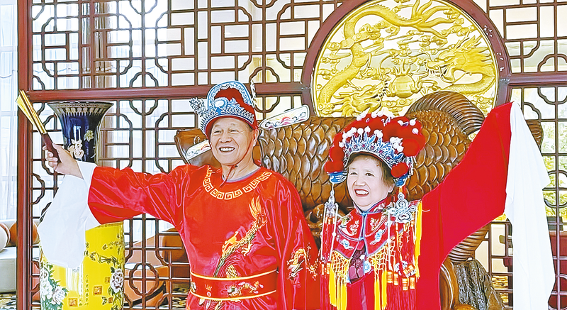 ?在聚秀山莊酒店,老年人身著戲服,在中式裝潢的古韻中體驗(yàn)戲曲妝造帶來的快樂。